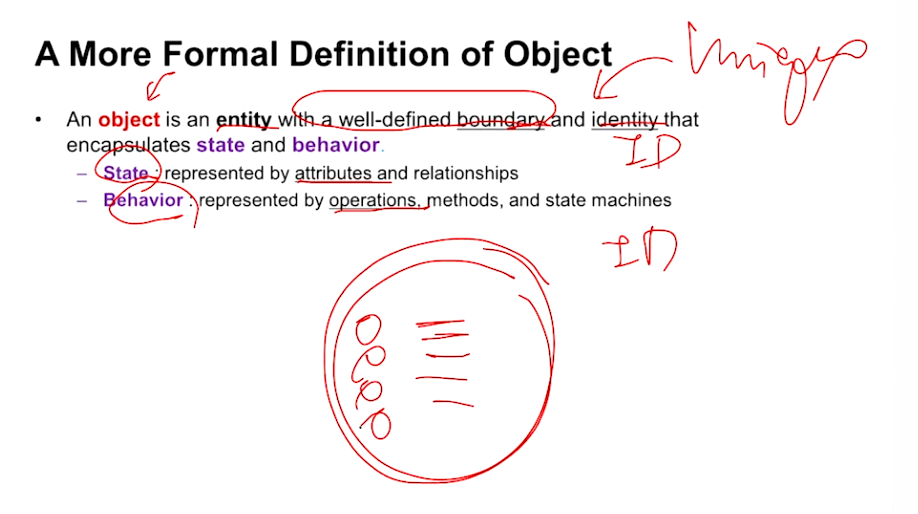 정리하면, State와 behavior를 캡슐화해서 내부적으로 명확한 바운더리를 가지고 고유한 ID를 가진 개체 (PPT에 나와있는 그림을 연상시켜라!)