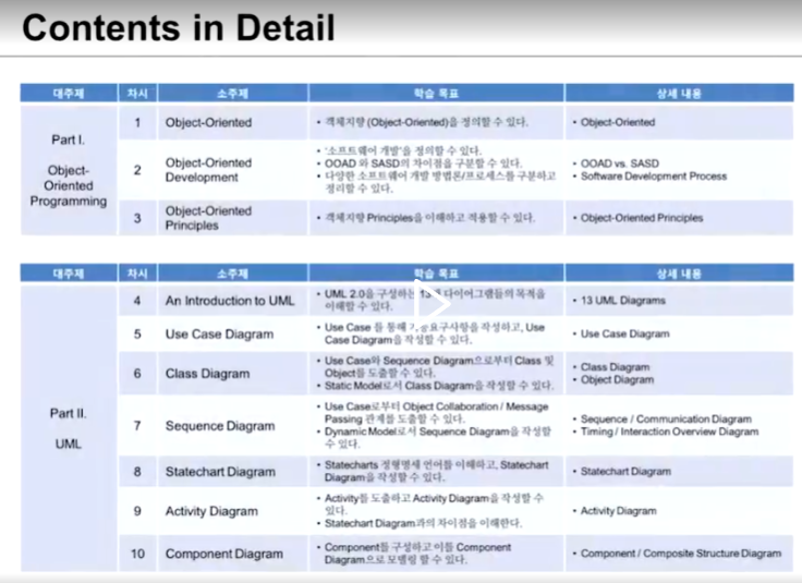 - 총 3개의 파트를 다를 예정(OOP, OOAD, UML)