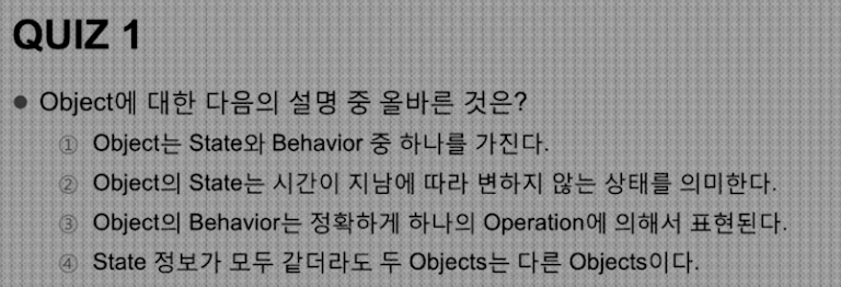- SW 관점에서 Object를 아래와 같은 요소를 다 가지고 있는 것을 말함
