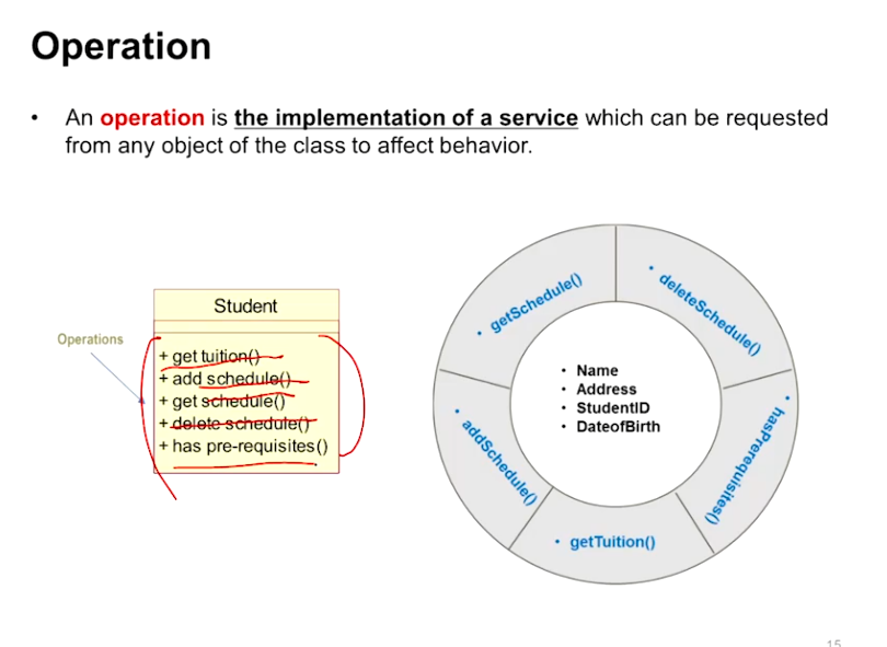 : 프로퍼티에 접근해서 getting/setting할수 있는 것을 말함. Object Diagram(Object 관계 설명하는 다이어그램)에서 Operation은 표현하지 않음(모든 오브젝트들은 같은 클래스에서 인스턴스화[생성] 시 다 같은 오퍼레이션을 갖기 때문임)