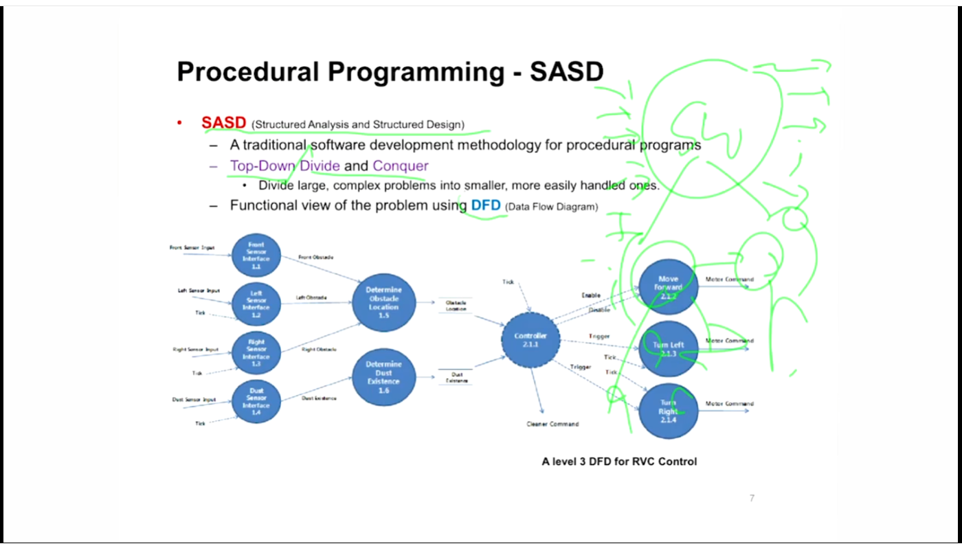 방식을 사용(프로시져를 통해 데이터를 인풋-아웃풋으로 주는 형태임으로 DFD가 보이기 좋음) - 싸이클 방식의 task 처리하고 나가고 방식을 처리하다 보니 Data flow 방식을 그림