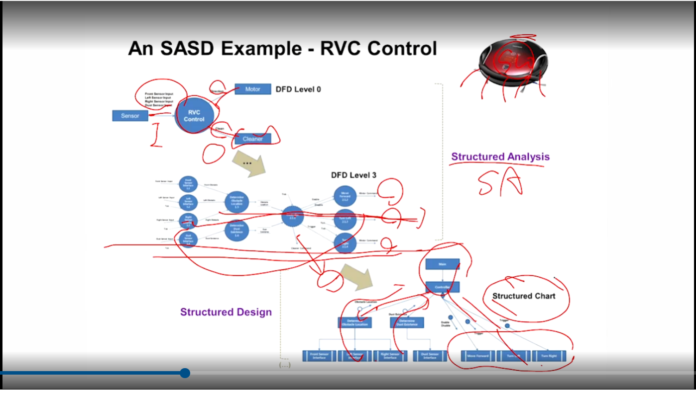 관계를 유지하면서 top-down 형식으로 데이터 처리를 어떻게 해나갈지 정리를 함- SA(Structured Analysis) : 데이터를 읽어서 그다음에 나가는 형식을 표현하여 DFD를 그려 데이터 흐름 파악에 포커싱