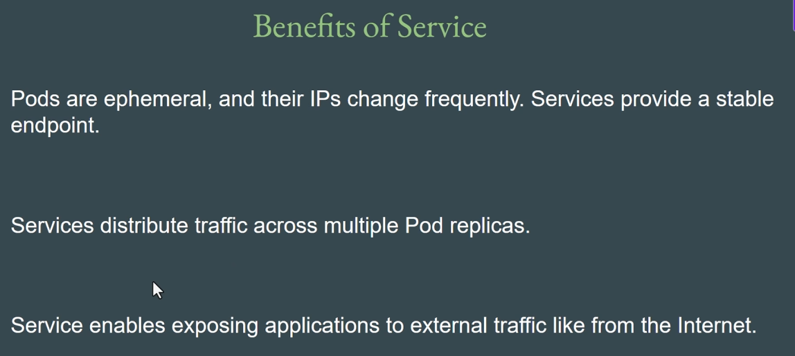- pod의 경우 dynamic하게 관리되며 스케쥴링되며, Private IP가 바뀔수가 있음으로 하드코딩해서 관리할순 없음
