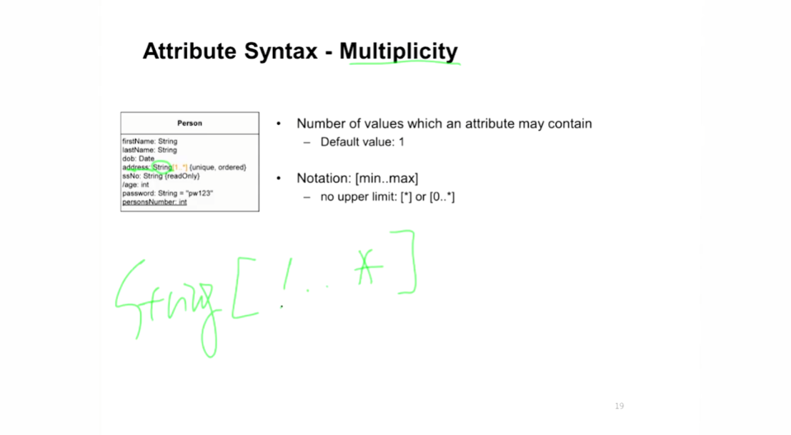 - Class Diagram이 아닌 Attribute의 Multiplicity 표현이 가능