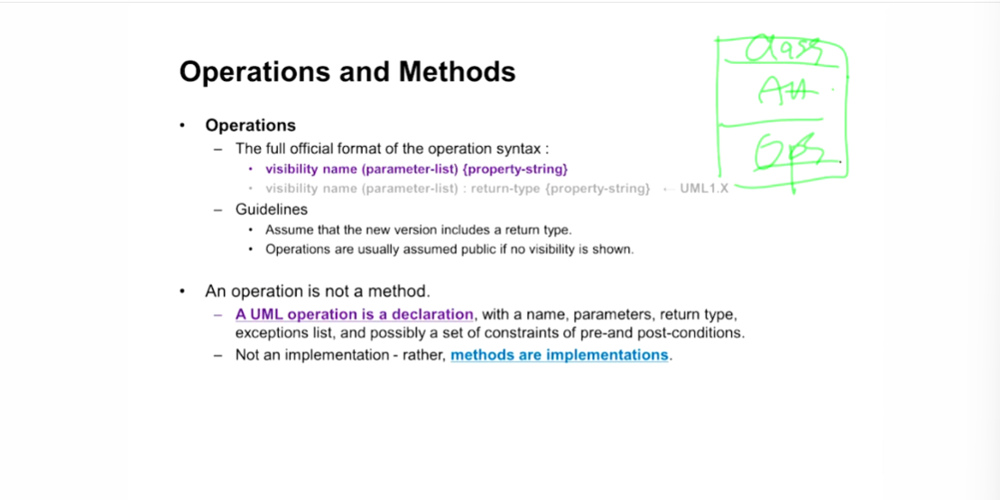 - Operation는 디자인 클래스 다이어 그램까지만 사용하고,