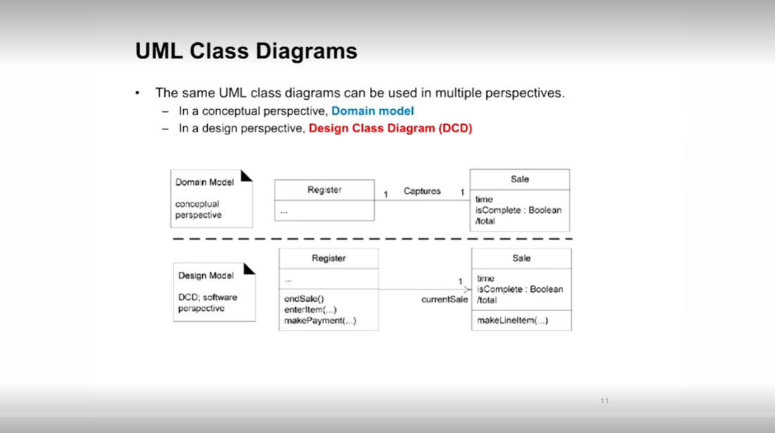 - OOA/OOD 단계에 따라 관점이 다르게 작성됨