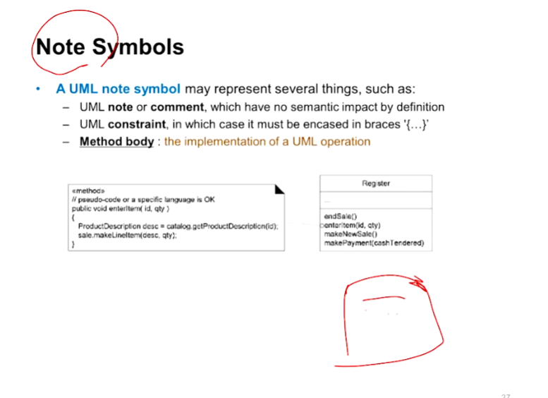 - UML에 Note를 작성하는 방법 (접힌 종이 표기 후 쫙 적으면 됨)