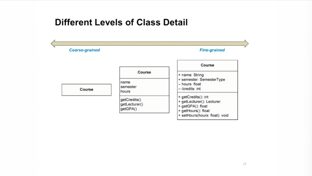 - Attribute/Behabor 생략하고 Association도 실선 한개만 그리고 두리뭉실하게 그림