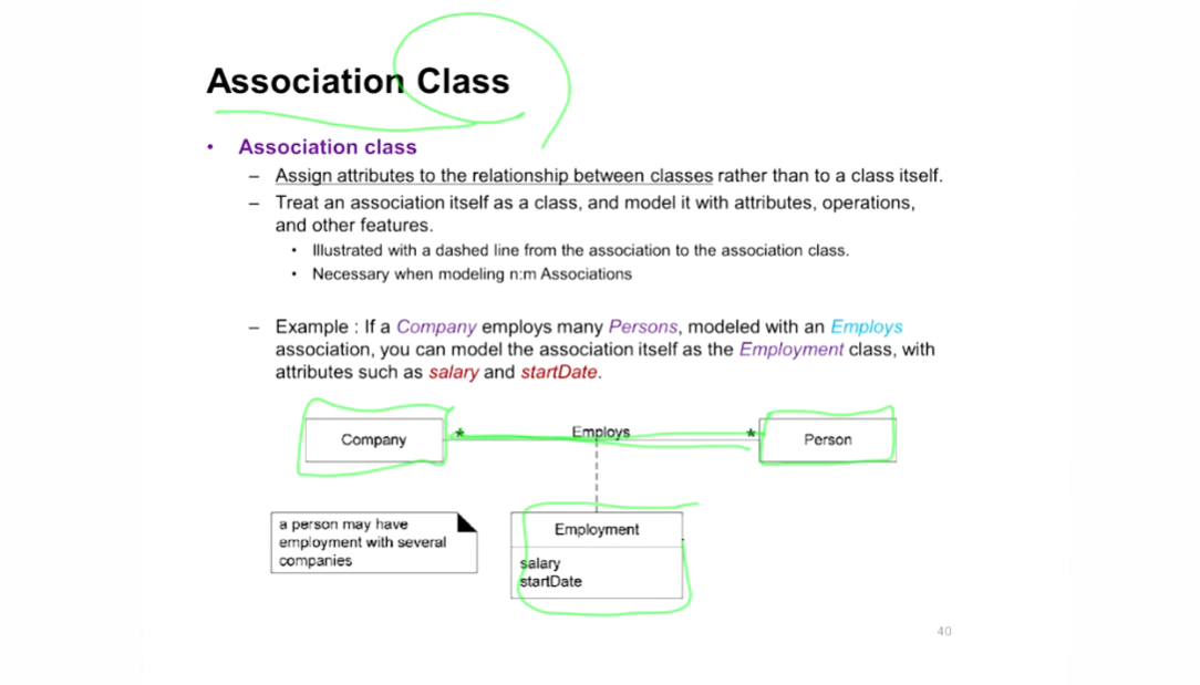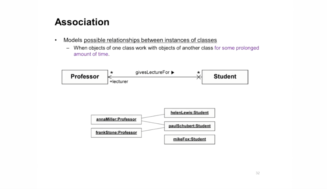 : 다른 클래스의 object와 특정 시간 같이 일을 하는 경우 Association 관계 표현(Has-a 관계로 생각해도 된다고 함) -