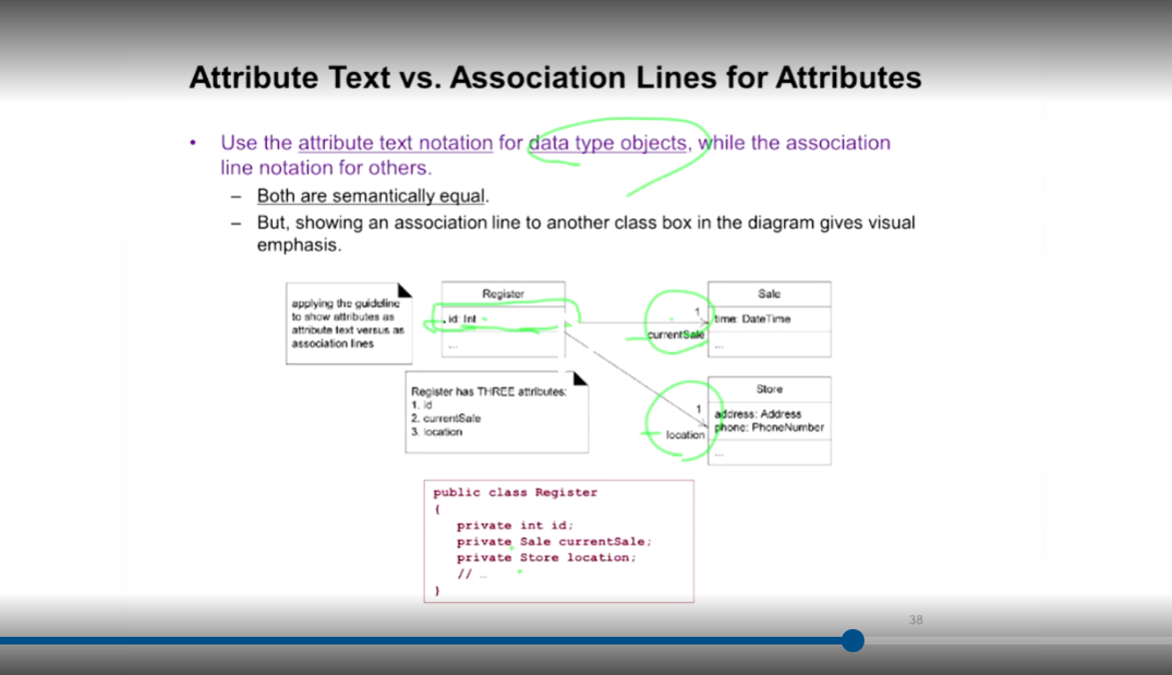 - custom or 다른 클래스인 경우 Association line으로 적어주는걸 권고함