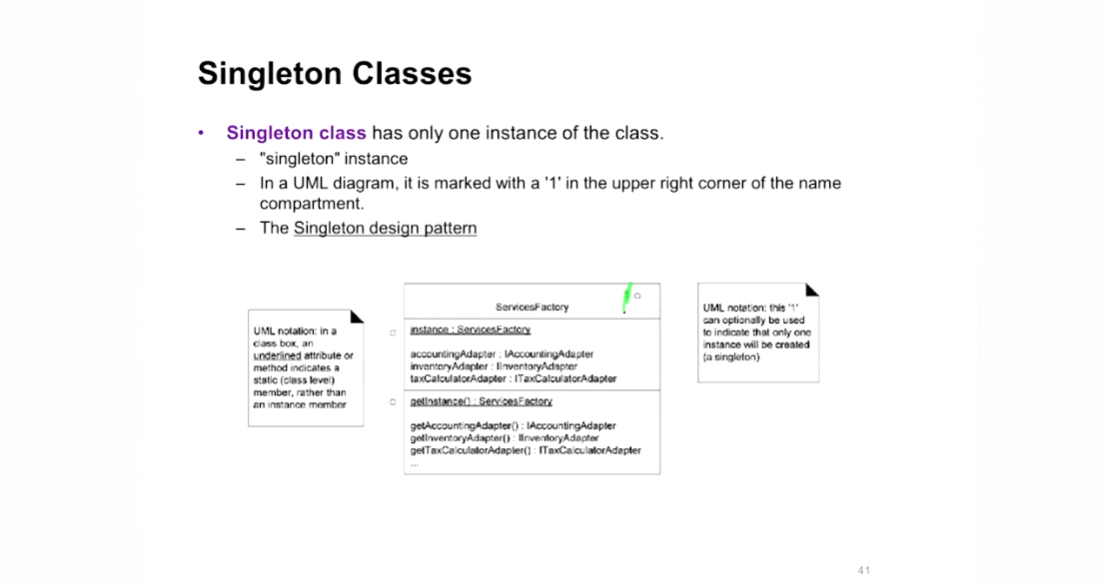 - 클래스당 obj이 1개만 나올 경우 싱클톤의 표현 오른쪽 위에 1을 표현