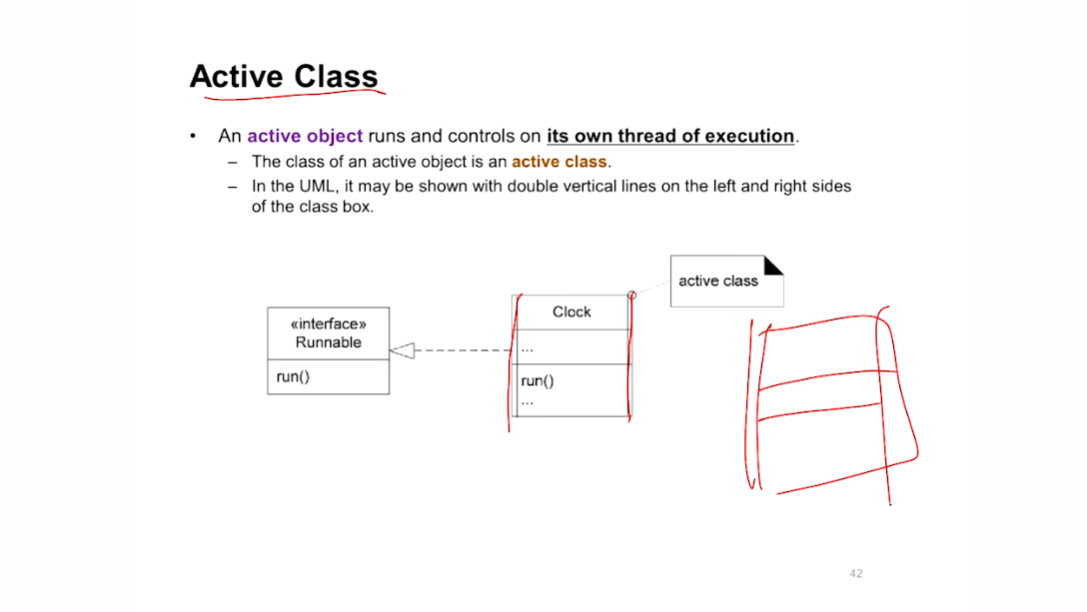 - active class : Thread가 되는 클래스를 말함 (양쪽에 선을 그어버리면 됨)