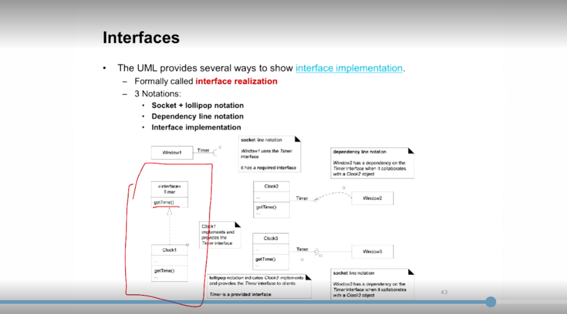 - 클래스 다이어 그램 수준에서 인터페이스 클래스의 Implementation은 점선 화살표 연결