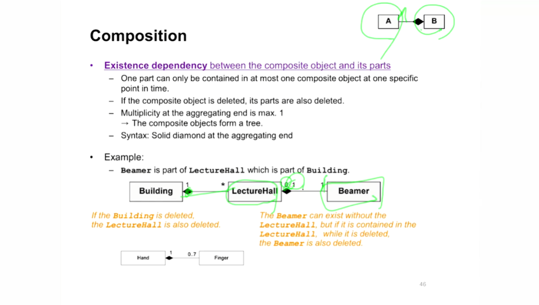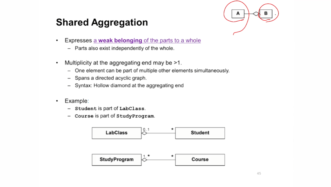 - Shared Aggregation : obj이 같이 del 될 필요가 없으면 흰색 마름모