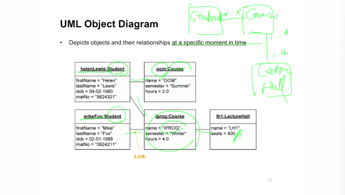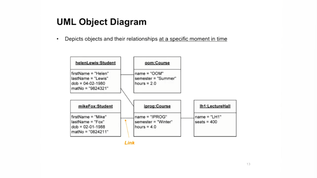 - Object Diagram으로 특정 시점의 존재하는 객체의 관계를 표현 가능