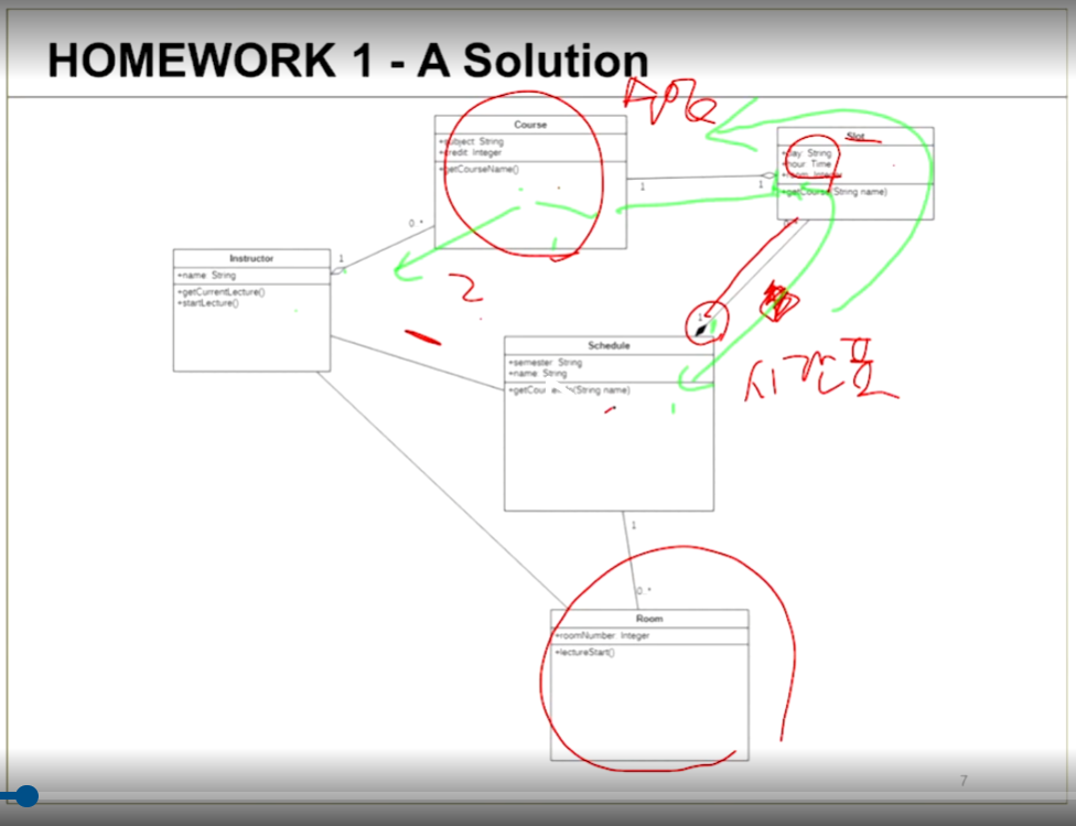 - Class Diagram으로 그려본다면 녹색과 같이 표현이 됨