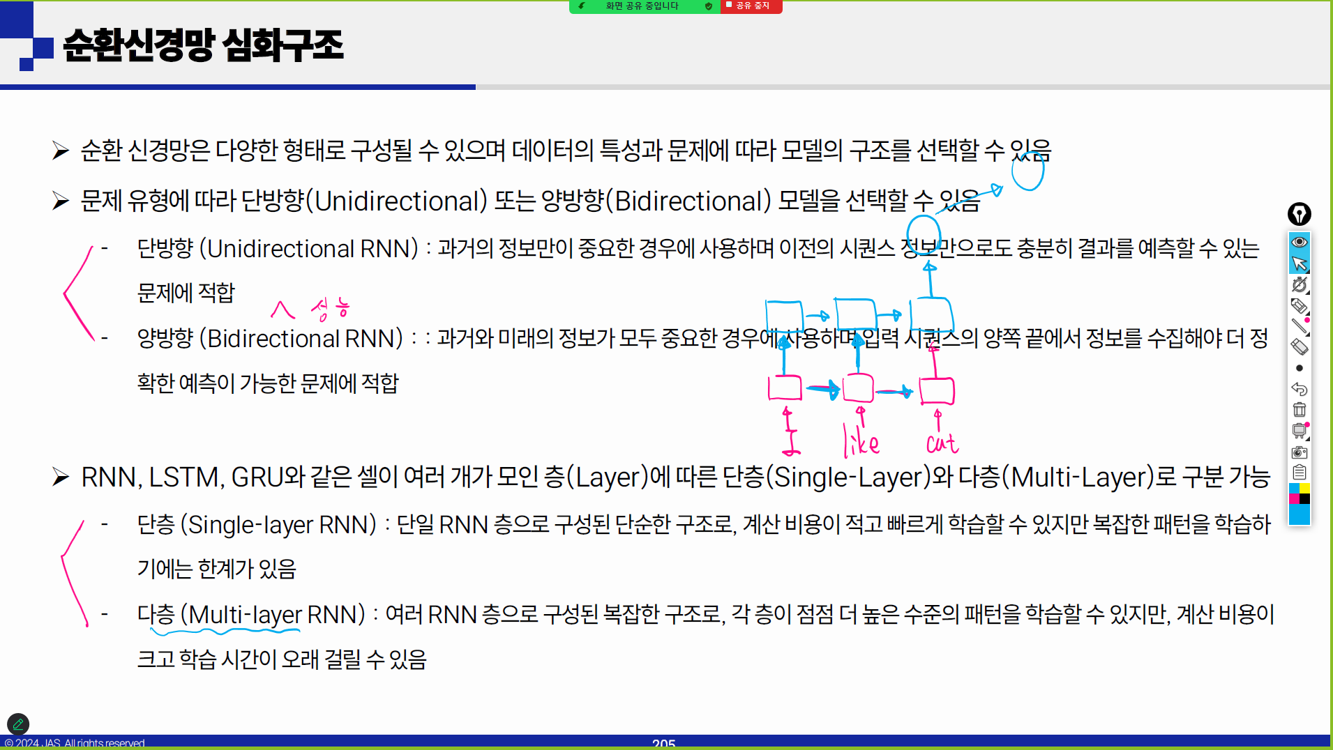 LSTM + cell state(장기기억) / hidden(단기기억)이 존재