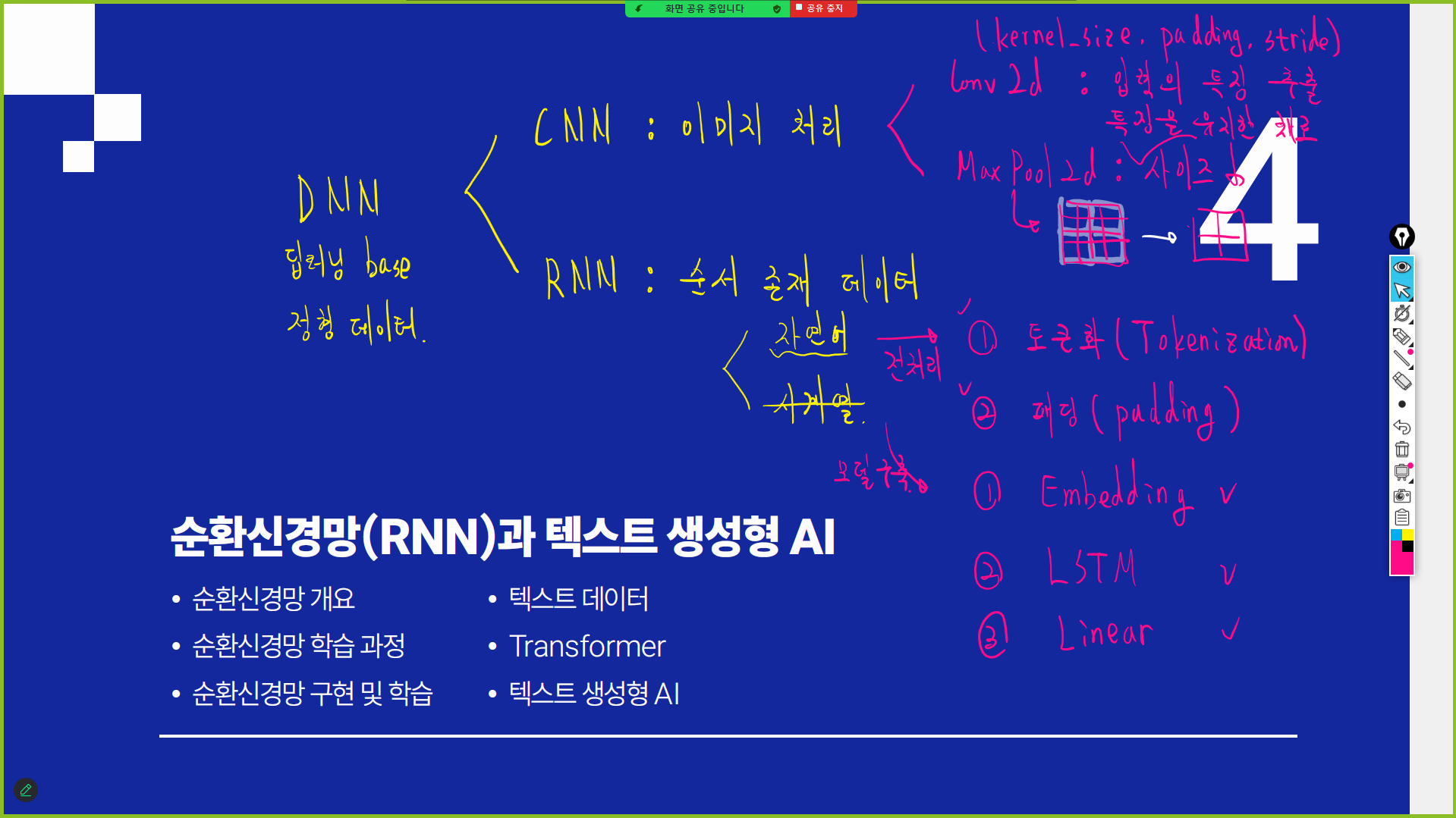 Conv2d + CNN에선 Conv + maxpool2d layer + flatten + DNN layer로 구성되어 있다 + 위 외에도 maxpool2d flatten linear dropout BatchNormal 등등이 있음 + DNN(MLP)